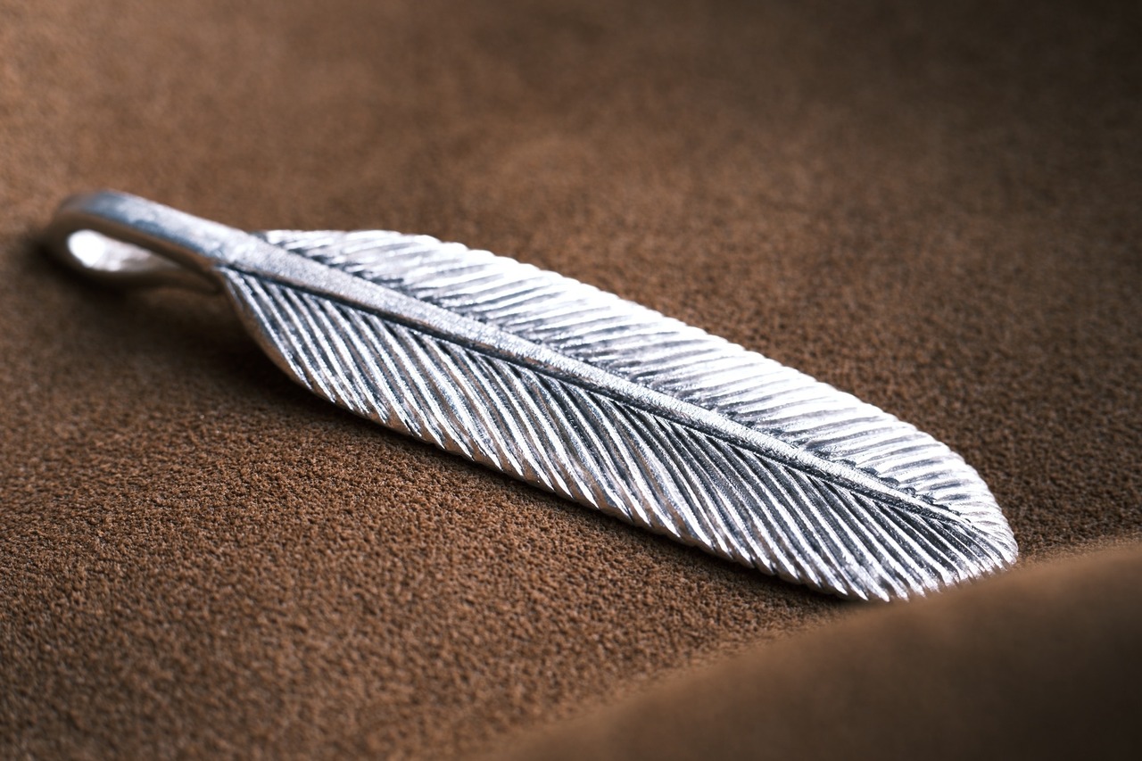 ビンテージな質感に仕上げたフェザーのネックレストップです。